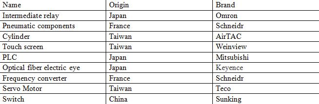 2)空気圧部品、電気部品、操作部品に先進的な世界的に有名なブランド部品を採用しています。