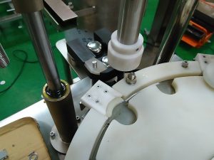 ボトルがこのステーションに行くと、キャッピングヘッドは自動的にねじ込みます。