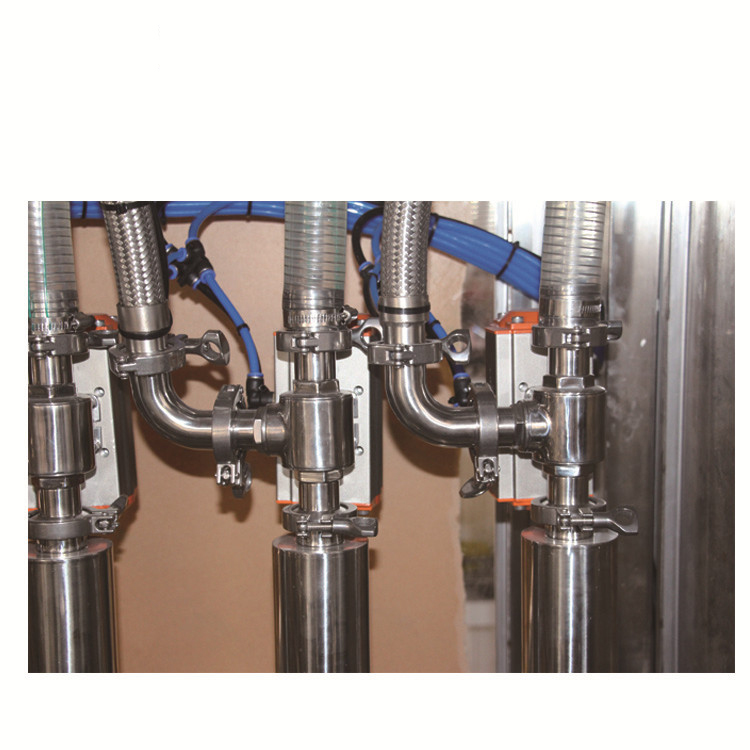 3. 2レールボトル供給、2レール充填、2ノズルキャップのねじ込みまたはローリングとプレスを採用することで、高出力のニーズを満たすことができます。このマシンは充填精度が高く、分解と滅菌が簡単にでき、クイックジョイントステンレススチールピストンポンプを採用しています。定トルクキャップねじと空気圧プロテクターの使用により、密閉口は漏れ防止です。